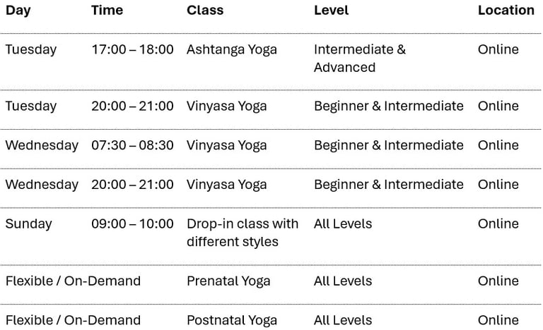All class times are given in Central European Time (CET/CEST)