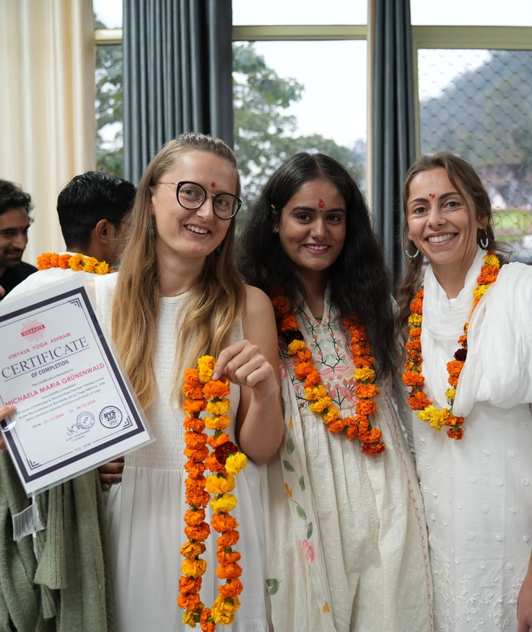 2024 zeichnete sich bei mir ein beruflicher Wechsel an – bisher hatte ich in der Internationalen Entwicklungshilfe gearbeitet – und dabei wuchs in mir der Wunsch, mich während einem Sabbatical intensiv mit Yoga zu beschäftigen. Es zog mich zu den Ursprüngen des Yoga nach Indien, um direkt an der Quelle verschiedene Yogatraditionen und Stile noch besser kennenzulernen. Der Weg führte mich nach Rishikesh in Indien, wo ich im Dezember 2024 meine Yogalehrerausbildung in Ashtanga und Vinyasa (200 Stunden) absolvierte. Begeistert und verzaubert von der Zeit im Ashram, verlängerte ich meinen Aufenthalt in Rishikesh, um mich zusätzlich in Schwangerschafts- und Rückbildungsyoga (85 Stunden) weiterzubilden.